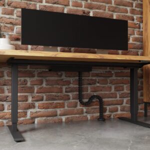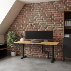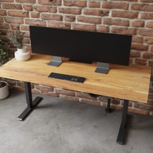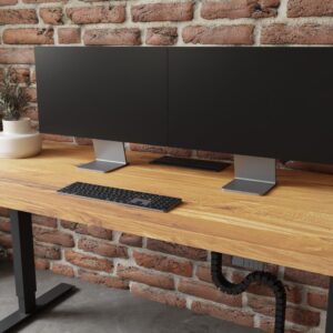 Biurko V2 z dębowym blatem rustykalnym o grubości 40 mm z elektrycznym stelażem z możliwością regulacji wysokości.
