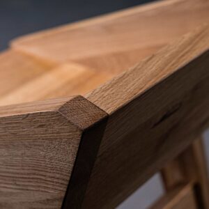 Na zdjęciach hoker został wykonany z drewna dębowego rustykalnego w odcieniu naturalnym.
