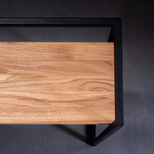 Nowoczesna konsola w wersji z litym dębowym blatem o grubości 20mm. Będzie idealnym rozwiązaniem w każdym nowoczesnym, loftowym czy skandynawskim wnętrzu.