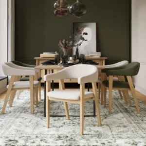 Pozwól się otulić wyjątkowym designem krzesła Linda. W elegancki i nowoczesny sposób łączy tapicerowane siedzisko i oparcie z mocną dębową ramą. Naturalny kolor drewna wnosi do wnętrza świeżość, charakter i przytulność. Zaokrąglone, w pełni tapicerowane oparcie wypełnione miękką pianką zapewnia maksymalny komfort. Kształt krzesła delikatnie otula, oferując uczucie bezpieczeństwa i wygody. To idealny wybór, który łączy estetykę z funkcjonalnością, tworząc przytulną i stylową atmosferę w Twoim domu.