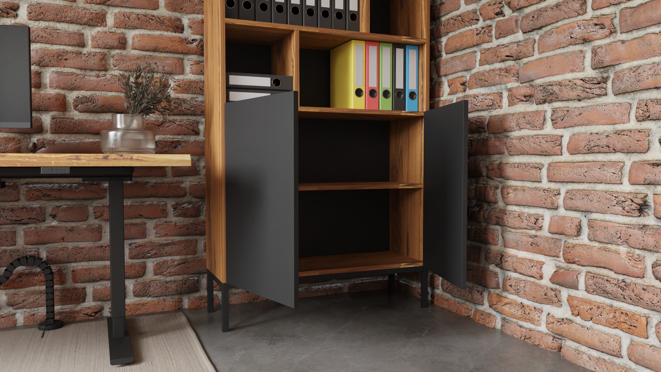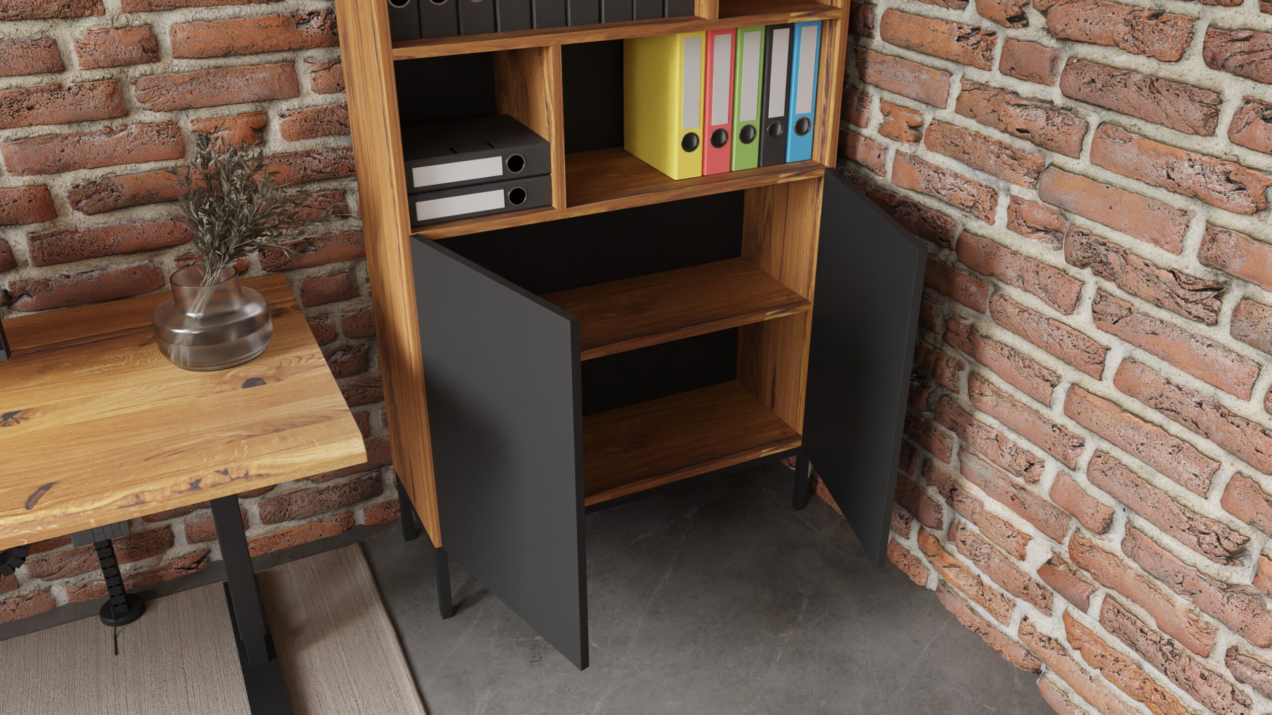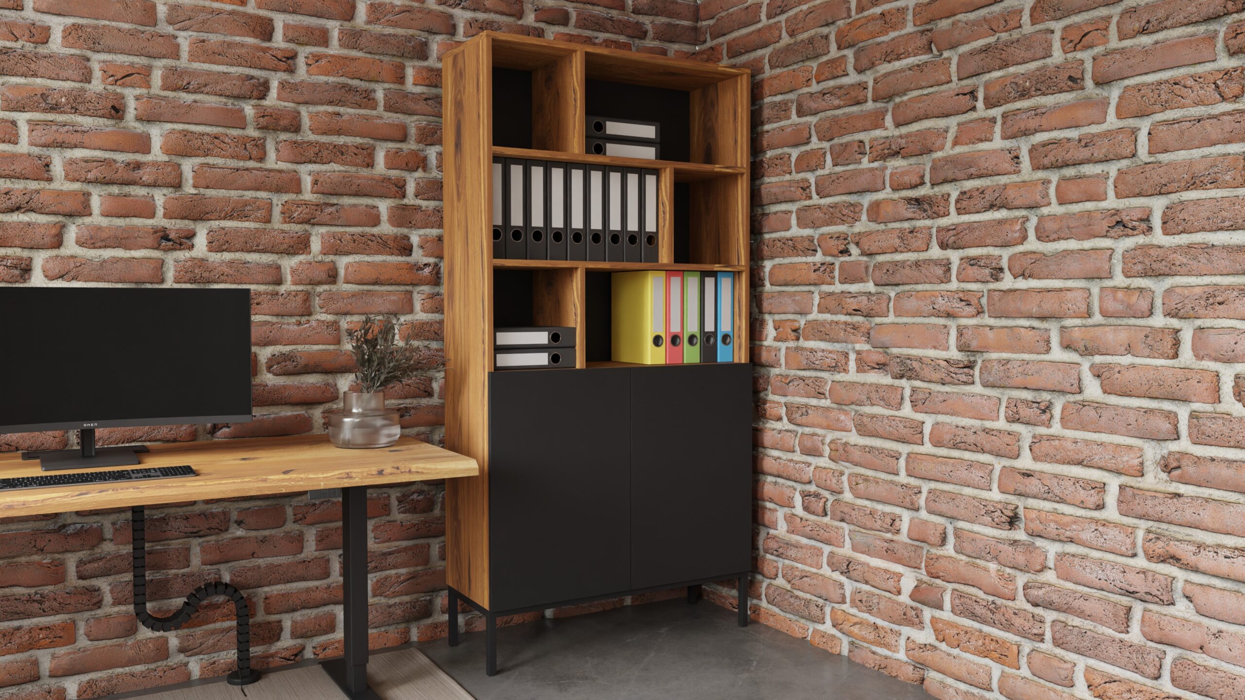 Design i funkcjonalność: Prosta, minimalistyczna forma komody z czystymi liniami sprawia, że doskonale komponuje się zarówno z nowoczesnymi, jak i klasycznymi aranżacjami biurowymi. Przestronne wnętrze pozwala na przechowywanie dokumentów, akcesoriów biurowych czy innych niezbędnych przedmiotów, pomagając utrzymać porządek w miejscu pracy.