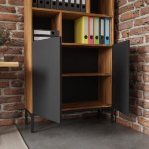 Ten stylowy regał o wymiarach 100×37 cm (szerokość x głębokość) i wysokości 198 cm to idealne rozwiązanie dla nowoczesnych przestrzeni biurowych. Zaprojektowana z myślą o funkcjonalności i estetyce, doskonale wpisze się w każde nowoczesne wnętrze, łącząc praktyczność z eleganckim wykończeniem.