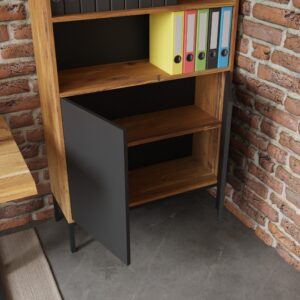 Design i funkcjonalność: Prosta, minimalistyczna forma komody z czystymi liniami sprawia, że doskonale komponuje się zarówno z nowoczesnymi, jak i klasycznymi aranżacjami biurowymi. Przestronne wnętrze pozwala na przechowywanie dokumentów, akcesoriów biurowych czy innych niezbędnych przedmiotów, pomagając utrzymać porządek w miejscu pracy.