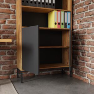 Ten stylowy regał o wymiarach 100×37 cm (szerokość x głębokość) i wysokości 198 cm to idealne rozwiązanie dla nowoczesnych przestrzeni biurowych. Zaprojektowana z myślą o funkcjonalności i estetyce, doskonale wpisze się w każde nowoczesne wnętrze, łącząc praktyczność z eleganckim wykończeniem.