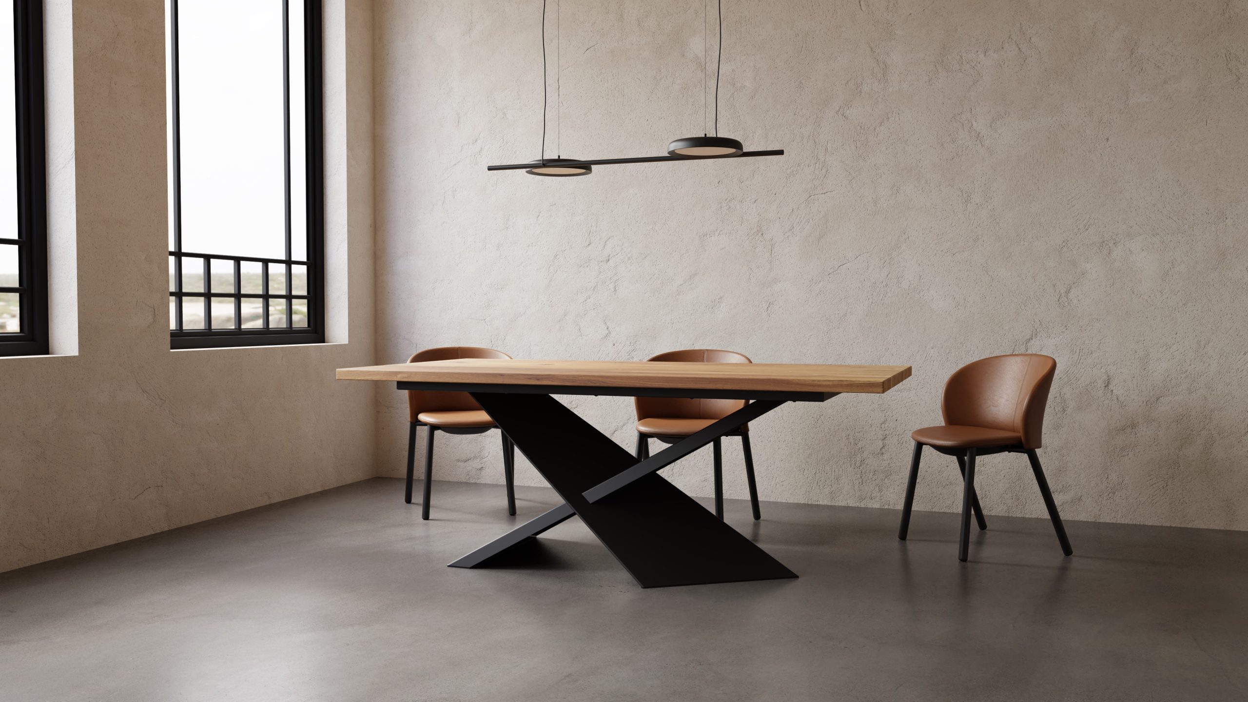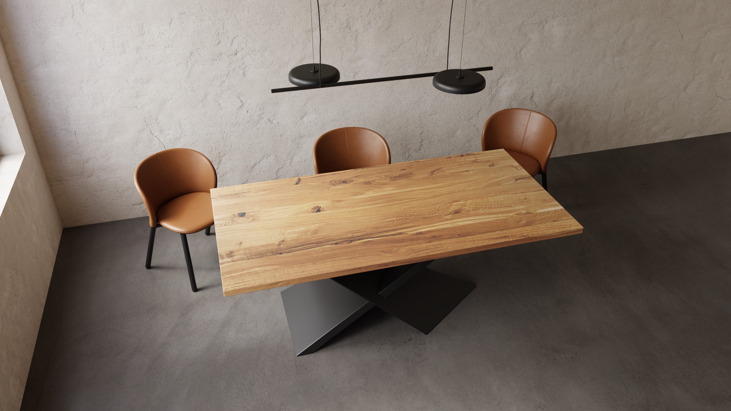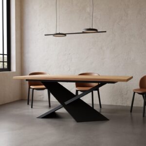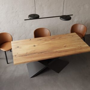 Dębowy blat o grubości 40mm  z ponadczasową podstawą, który swoim wyglądem wpasuje się w każdy wystrój pomieszczenia.