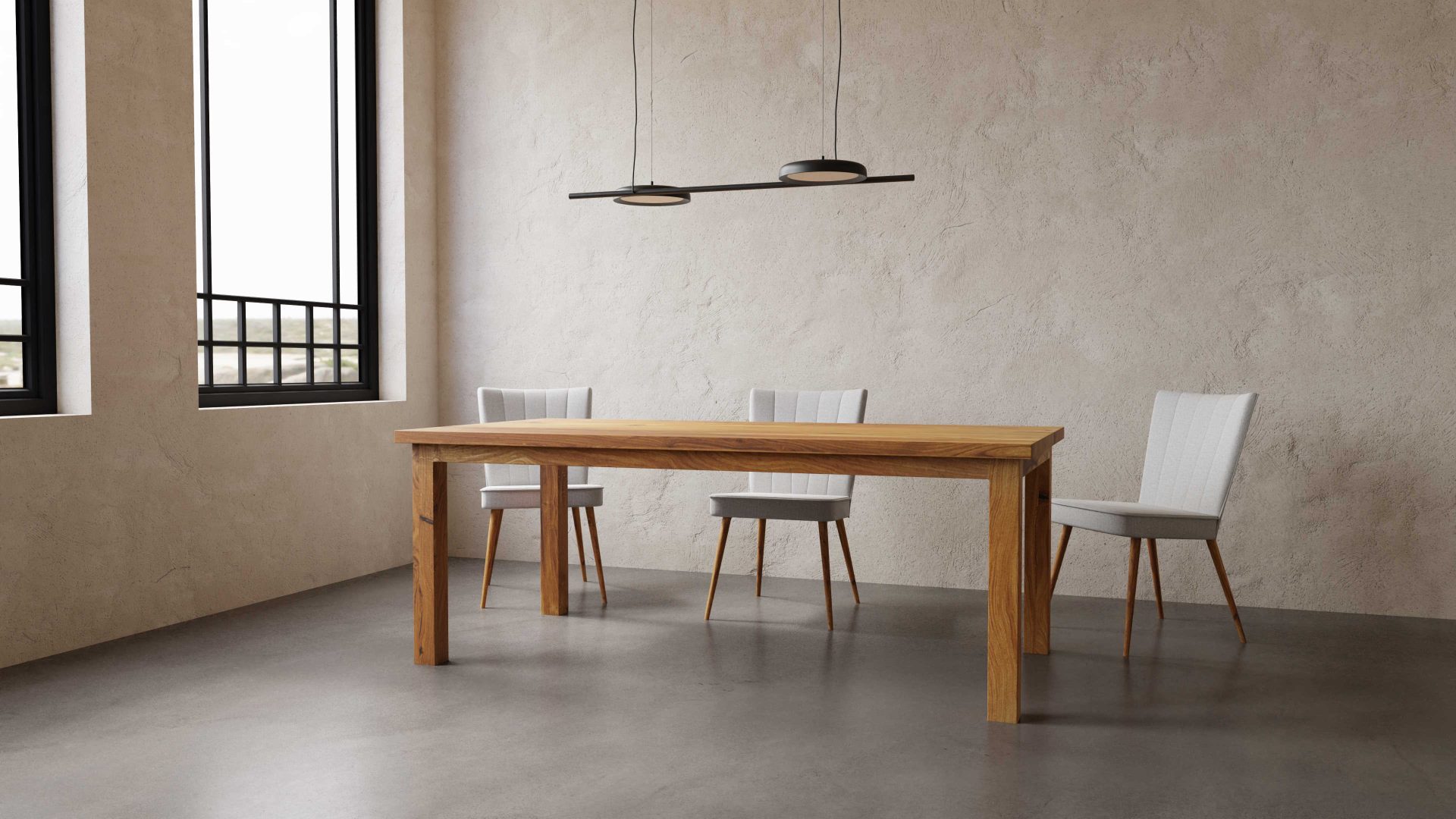 Dębowy blat o grubości 40mm z ponadczasową klasyczną podstawą, która swoim wyglądem wpasuje się w każdy wystrój pomieszczenia.