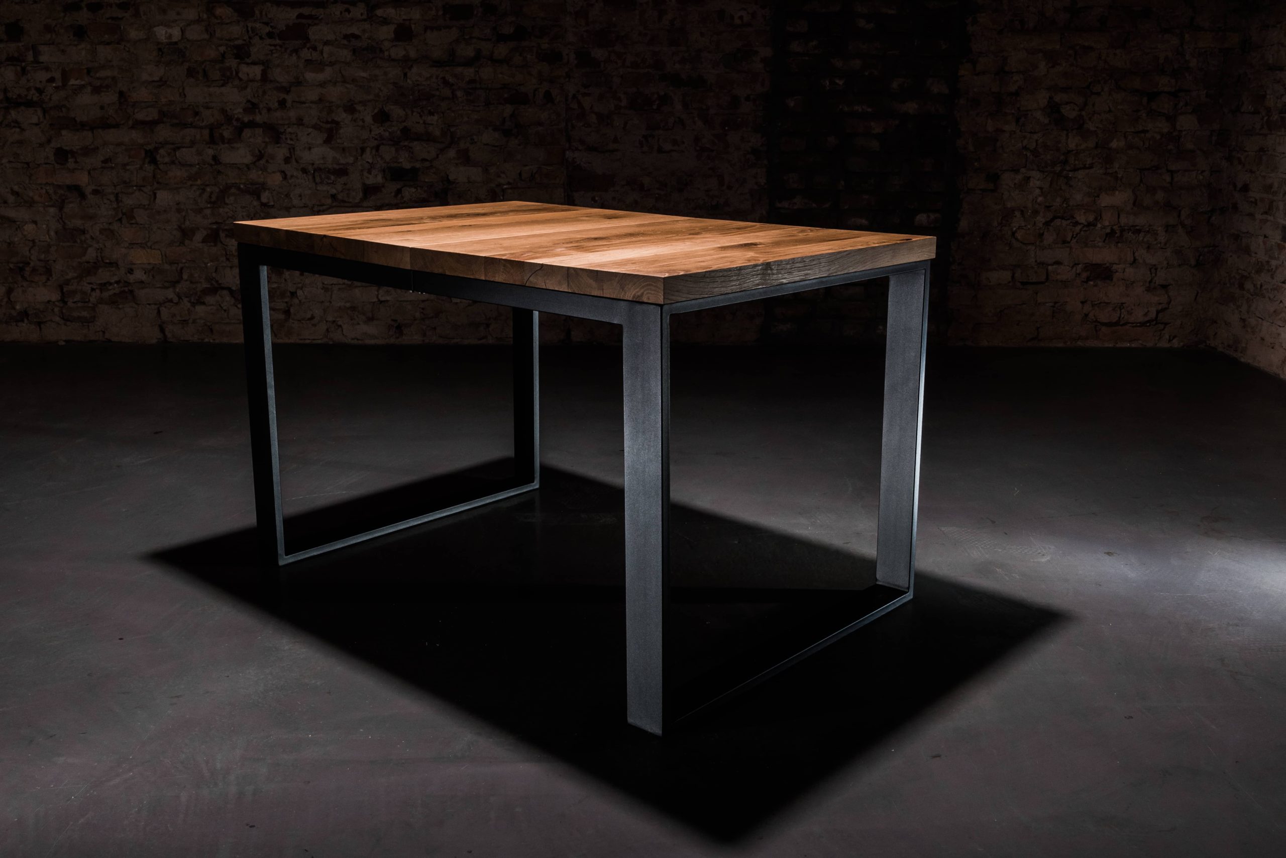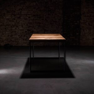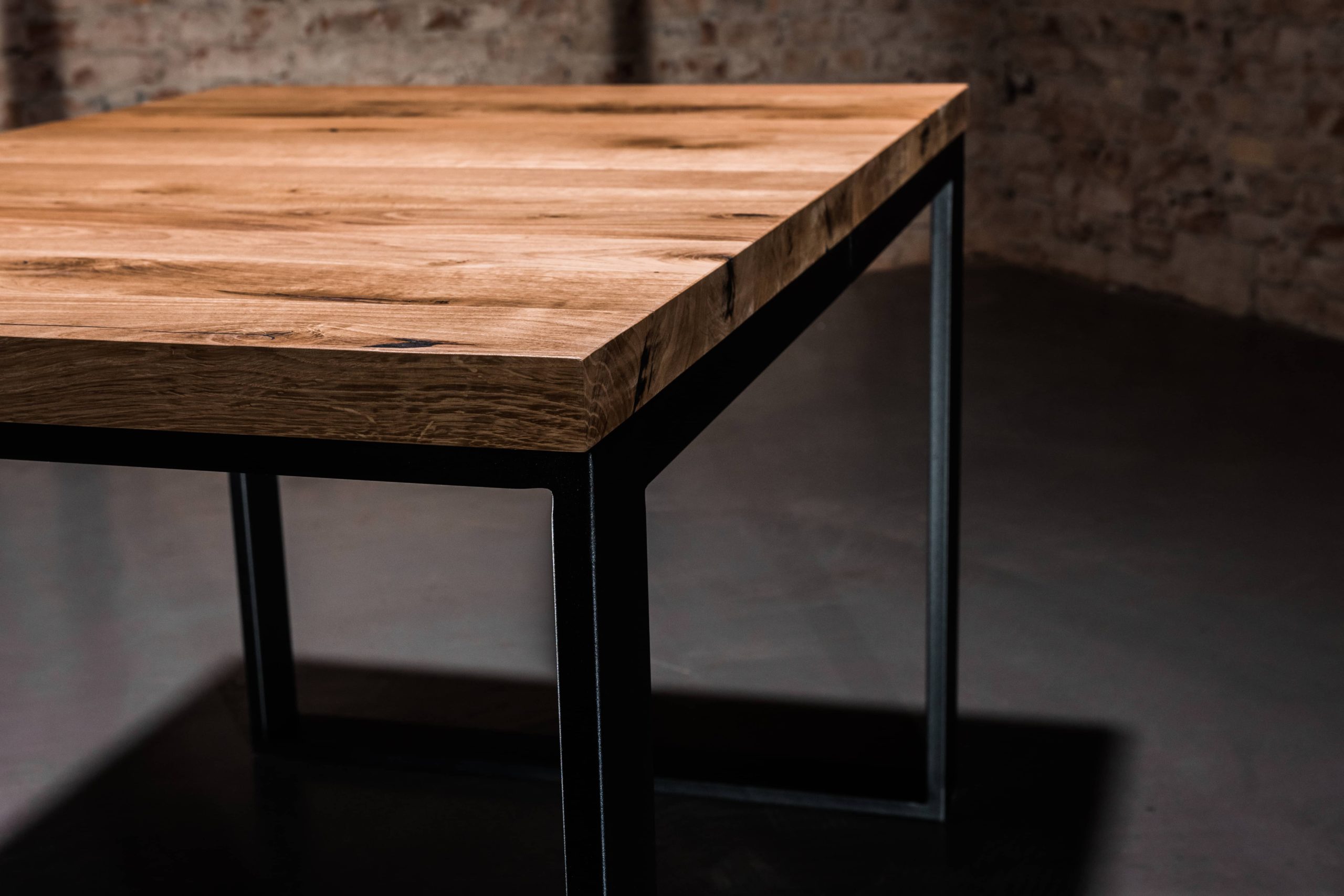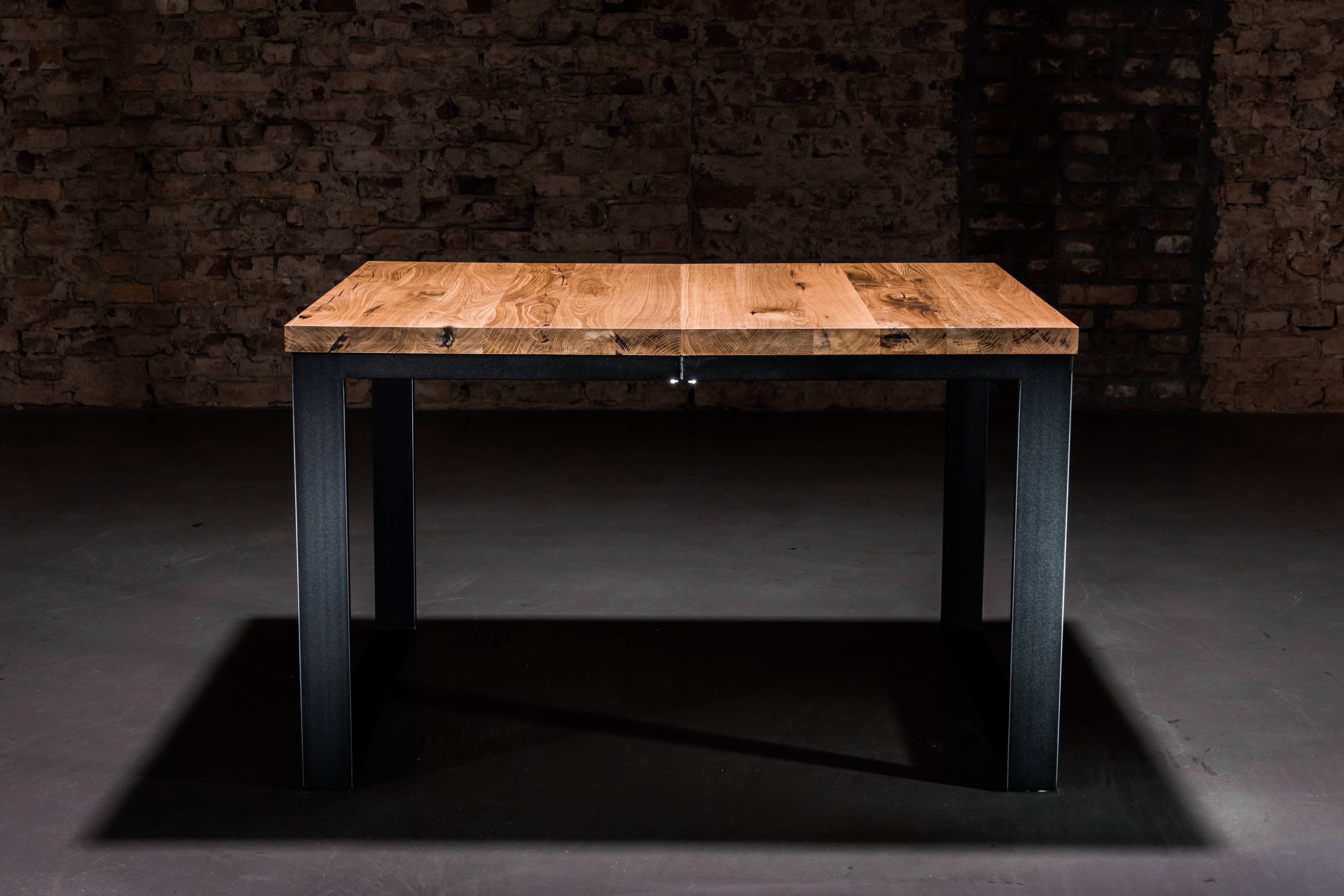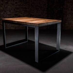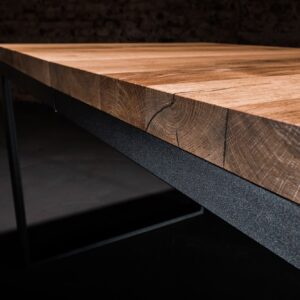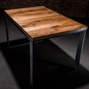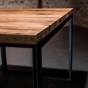 Solidna konstrukcja blatu wykonana została z drewna dębowego zabezpieczonego olejem, podbijającym jego naturalną lub dowolnie wybraną barwę oraz gwarantującym hydrofobowość. W połączeniu z podstawą malowaną proszkowo nadaje meblowi nowoczesnego wyglądu. Oferujemy możliwość personalizacji zarówno rozmiaru stołu, jak i wybarwienia blatu: