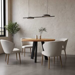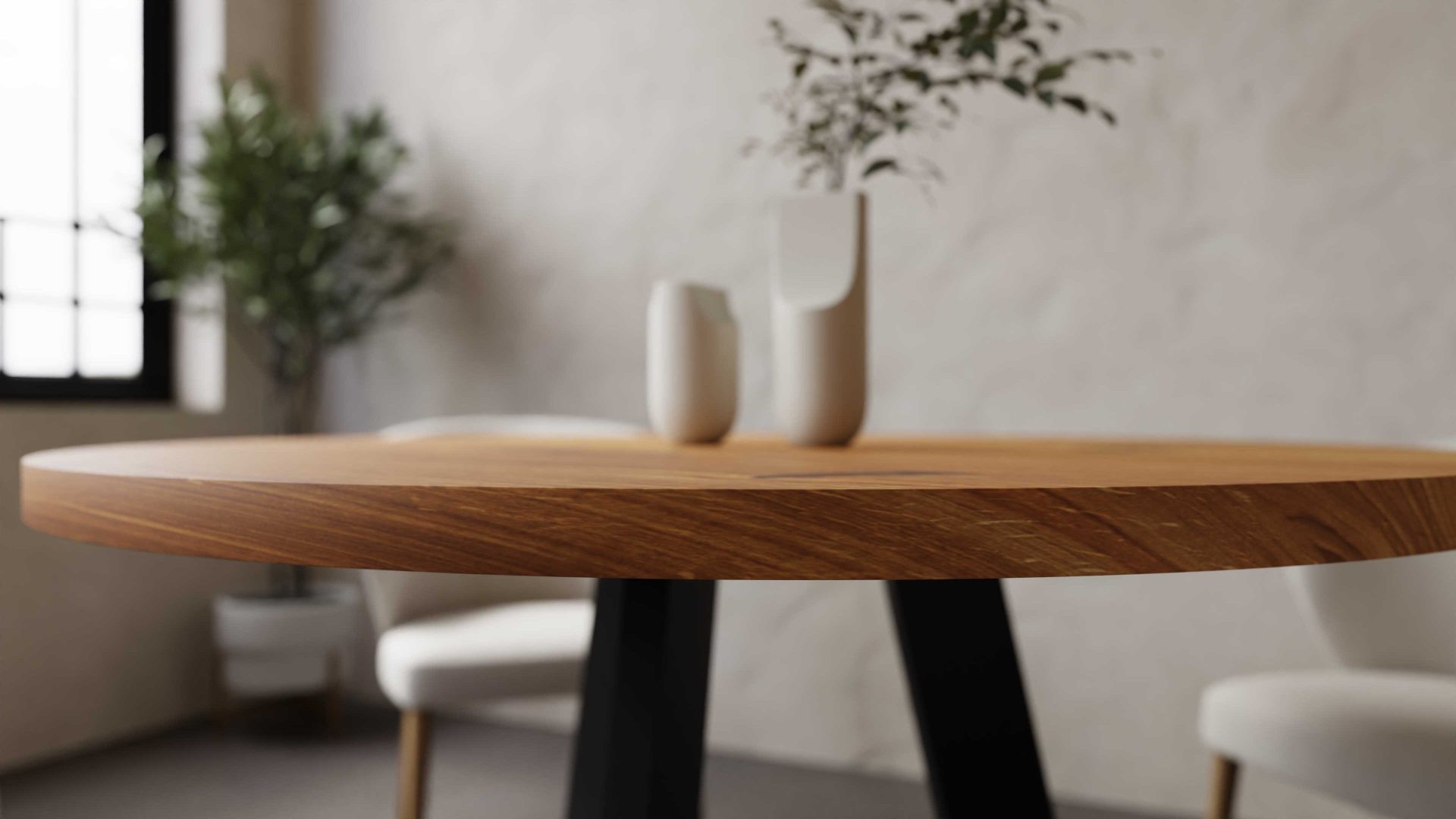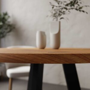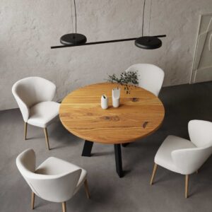 Minimalistyczna forma podstawy wraz z klasycznym dębowym blatem wpasuje się w nie jedno pomieszczenie, a dom zyska niecodzienny wygląd.