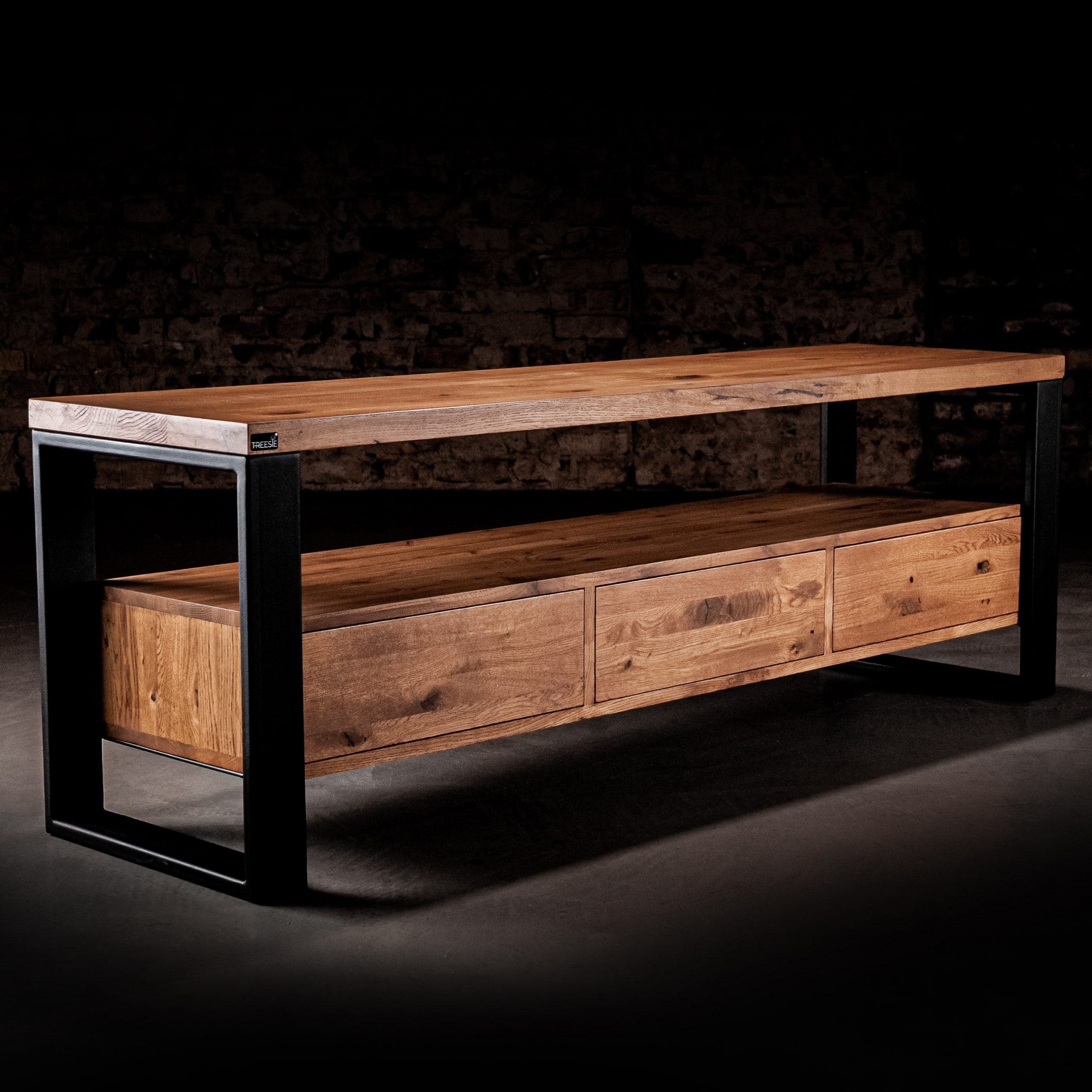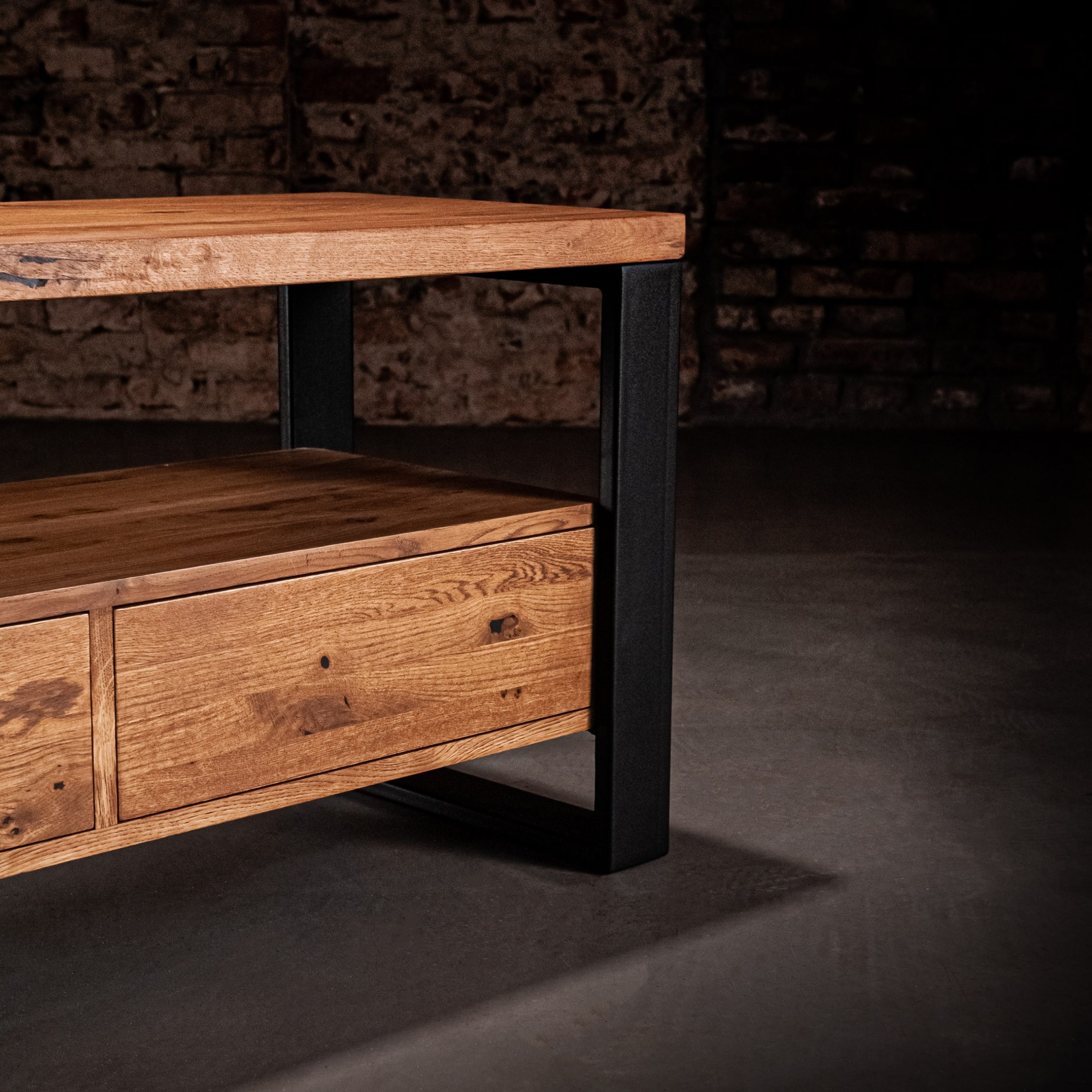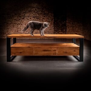 Ponadczasowe piękno drewna dębowego, z którego została wykonana nasza szafka RTV, to gustowna propozycja dla nowoczesnych salonów. Jego prosta forma sprawia, że z łatwością wpisze się w charakter salonu o loftowym czy nowoczesnym stylu.